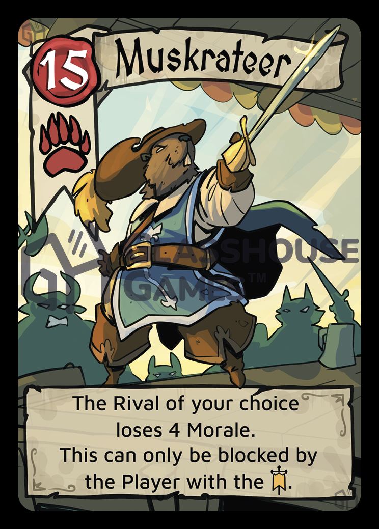 Veteran tip: In games with three or more players, you don’t need to have the banner to take advantage of a Muskrateer’s unblockability.